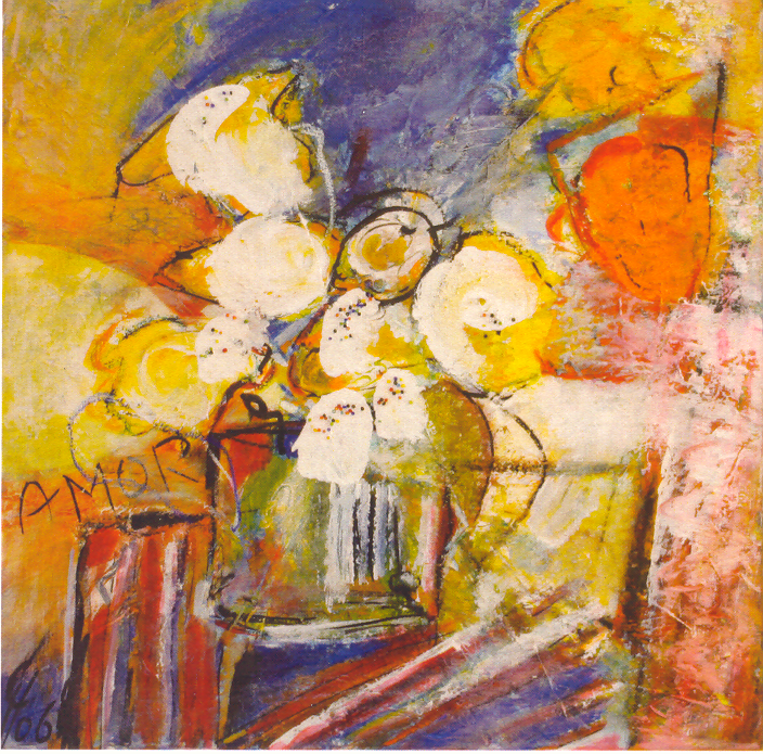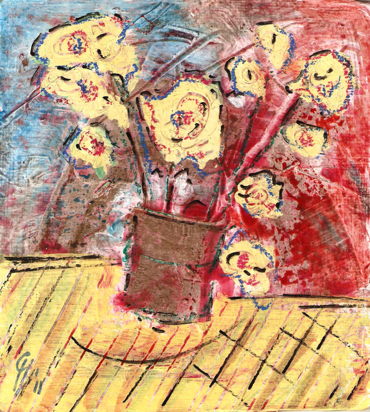 bloemen, mixed media op paneel, 19,5x21,5 cm-1