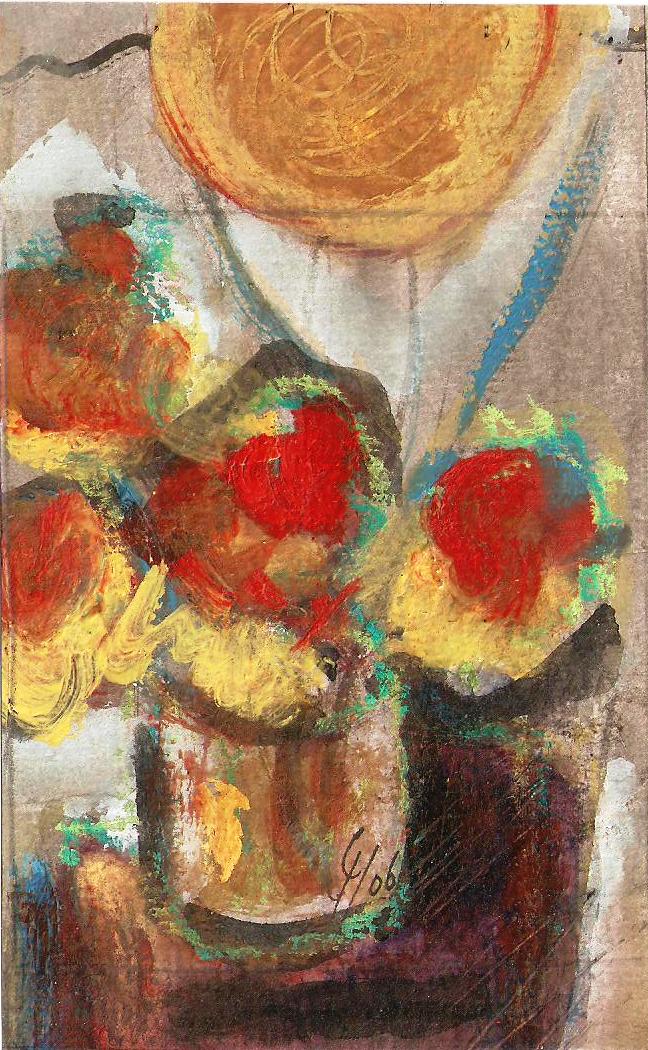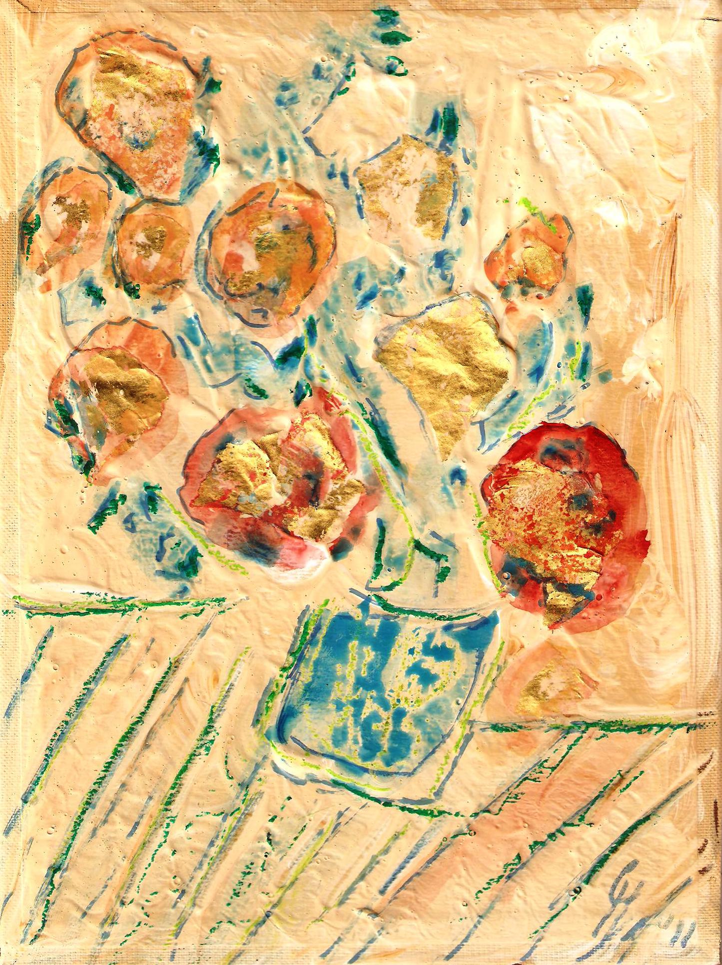 bloemen, mixed media op boekkaft, 18x24 cm.-1